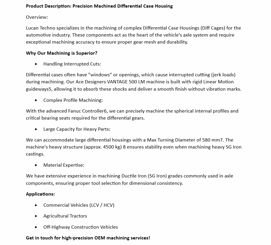 ตัวเรือนเฟืองท้ายเหล็กกราไฟต์ทรงกลมแบบ CNC ความแข็งแรงสูงรุ่นใหม่สำหรับรถบรรทุก รถกระบะ และรถแทรกเตอร์ - ยี่ห้อ LUCAN TECHNO