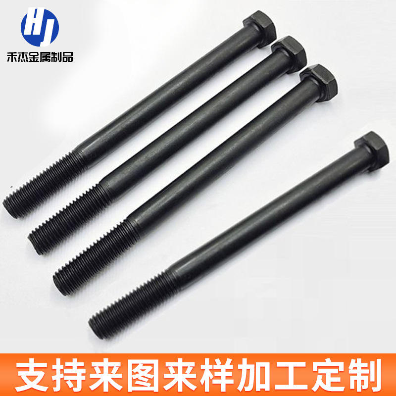 สลักเกลียวความแข็งแรงสูง เกรด 8.8 เกลียวเต็มตัว ชุบดำ หัวหกเหลี่ยมภายนอก สำหรับการเชื่อมต่อ