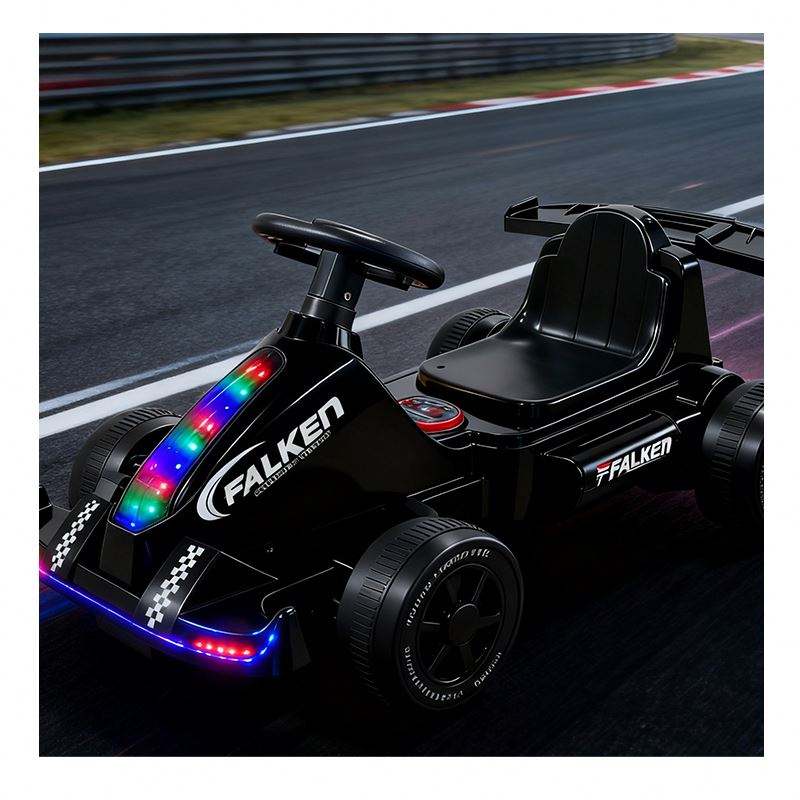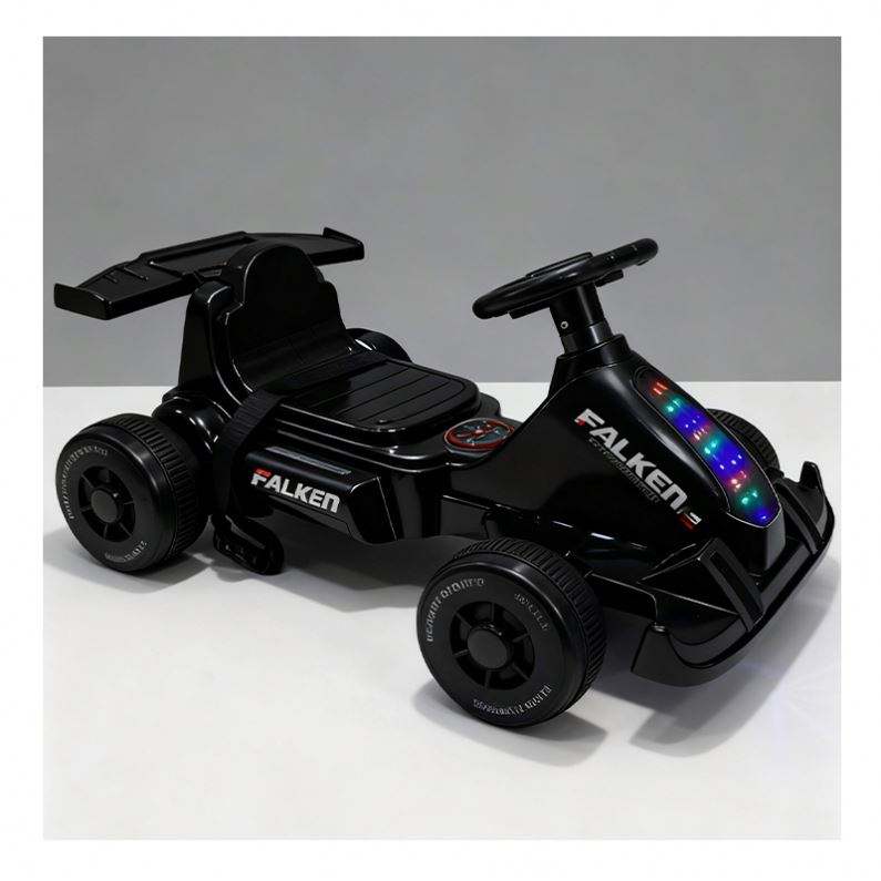 รถเด็กเล่นดนตรีพร้อมไฟ แรงสูง ทนทาน ขับเคลื่อนด้วยเท้า สีดำ แบตเตอรี่ 6V4Ah โครงสร้างแข็งแรง ปลอดภัย สำหรับการเรียนรู้และเล่นสนุก 4 ล้อ