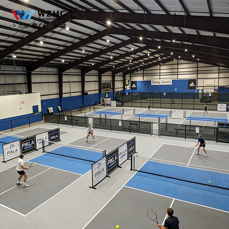 อาคารโครงสร้างเหล็กความแข็งแรงสูงสำหรับสิ่งอำนวยความสะดวกกีฬาเทนนิส คานรูปตัว H รับน้ำหนักมาก อายุการใช้งาน 50 ปี พื้นผิวชุบสังกะสี