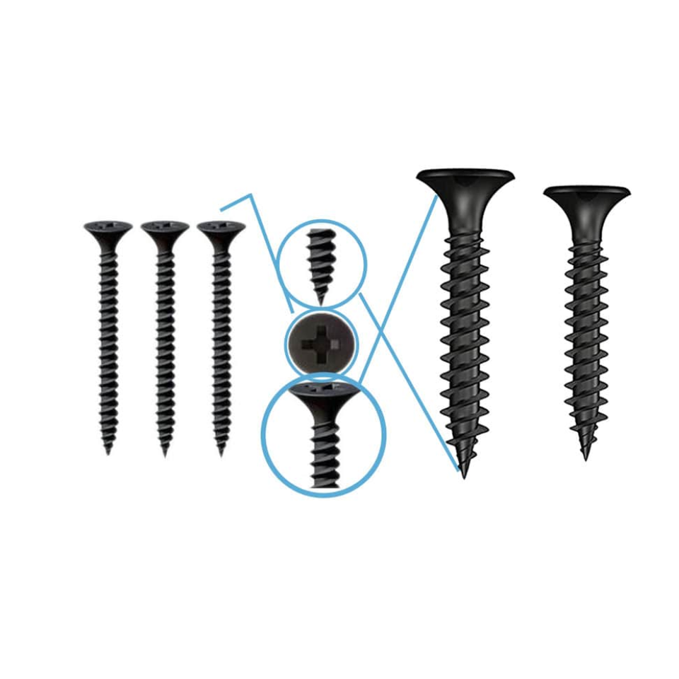 สกรูยึดผนังยิปซัมแบบเกลียวปล่อย หัวแบน เคลือบสีดำ ผลิตจากเหล็กกล้า ความแข็งแรงสูง ผลิตในเวียดนาม