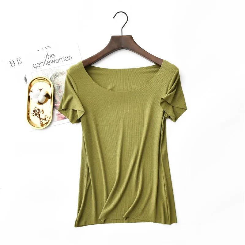 เสื้อยืดผู้หญิงแขนสั้นธรรมดาเข้ารูปลำลองผ้าฝ้ายยืดได้ไร้รอยต่อระบายอากาศได้ดีเสื้อยืดสีดำใต้เสื้อ