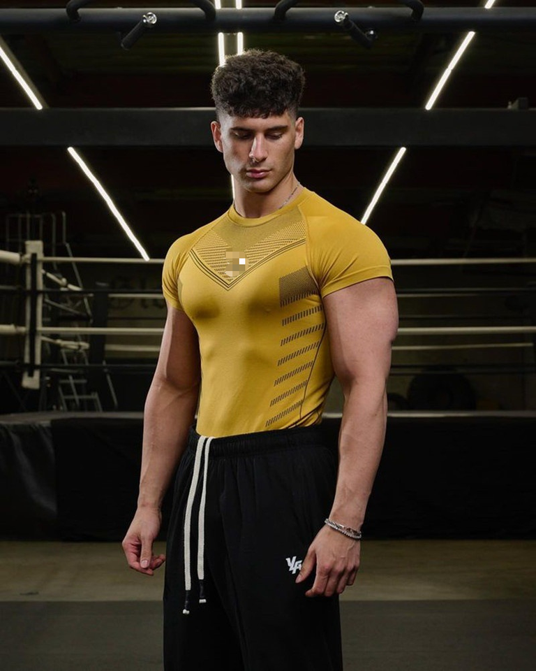 เสื้อยืดแขนยาวซันตัน ไฮสเตรชเบิล ไร้ตะเข็บ คอกลม 220 กรัม สำหรับเล่นกีฬา ทรงเข้ารูป แห้งเร็ว โลโก้ด้านหน้า ผ้ารัดรูป
