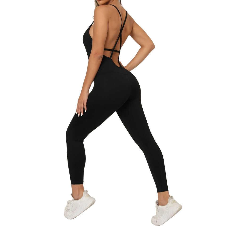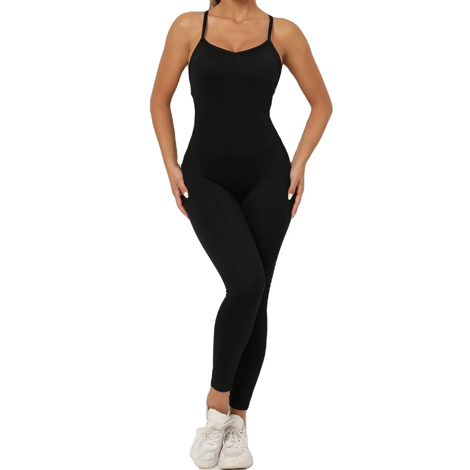 จั๊มสูทออกกำลังกายแบบยืดหยุ่นสูง คอเหลี่ยม แขนกุด ชุดออกกำลังกายเต็มตัวสำหรับผู้หญิง ไซส์ XS-3XL