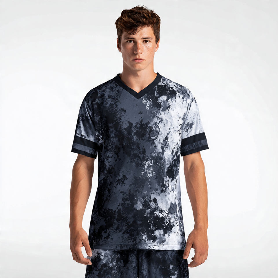 เสื้อฟุตบอลซับลิเมชั่นคุณภาพสูง ปรับแต่งได้ตามต้องการ เสื้อซ้อมฟุตบอล คอวี แขนสั้น พิมพ์ลาย เสื้อฟุตบอลชาย