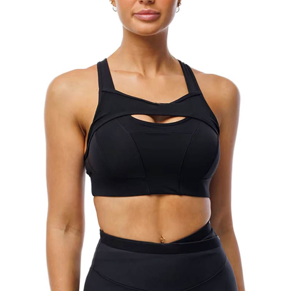 สปอร์ตบราผ้าสแปนเด็กซ์ไนลอนแบบซัพพอร์ตสูง ระบายอากาศได้ดี 100% และแห้งเร็ว ผลิตจากวัสดุสำหรับผู้หญิง