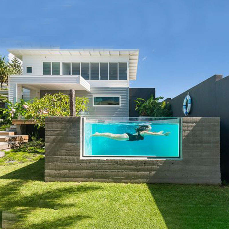 ผนังกระจกหน้าต่างหนาทนทานพื้นผิวสูงทำจากไฟเบอร์กลาสเหนือพื้นสระว่ายน้ำขอบอะคริลิค