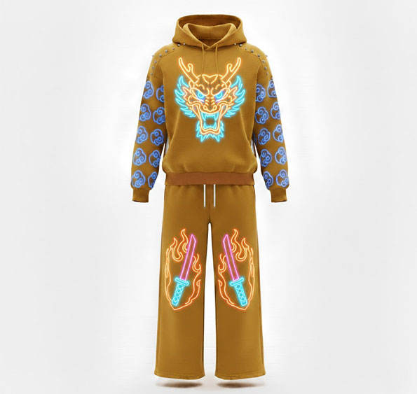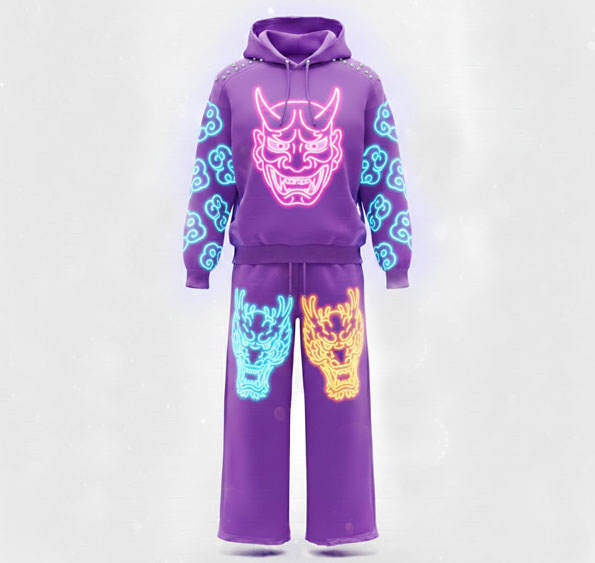 ชุดวอร์มผู้ชายไฮเทค ลำลอง ผ้าฝ้าย 100% เนื้อหนา สีสันสดใส สไตล์ไซเบอร์พังก์
