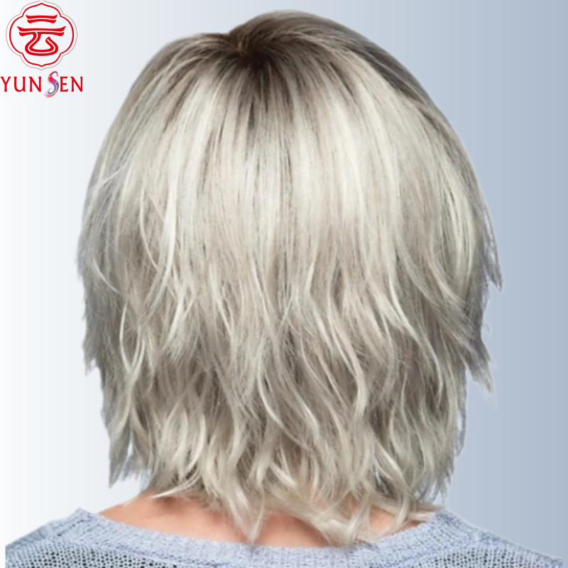 วิกผมไฟเบอร์ทนความร้อนสูง ทรงบ๊อบสั้นหยิกแบบผูกเชือกด้านหน้า แสกข้าง สีบลอนด์แพลตตินั่มออมเบร สำหรับผู้หญิง