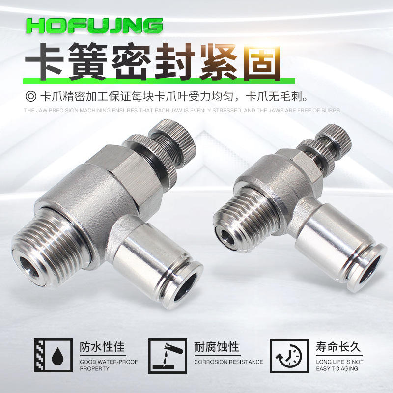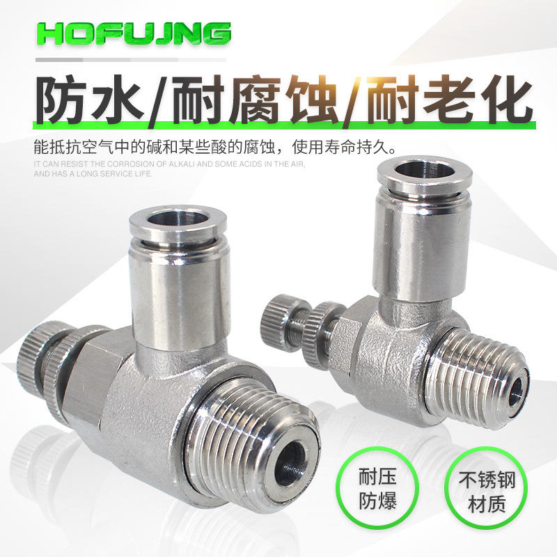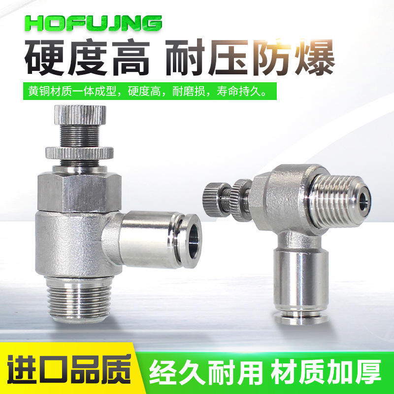 ข้อต่อควบคุมความเร็วกระบอกสูบสแตนเลสชุบนิกเกิล ทนความร้อนสูง ทนแรงดันสูง รุ่น SL8-02 วาล์วควบคุมความเร็ว