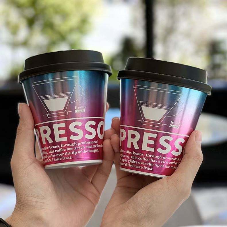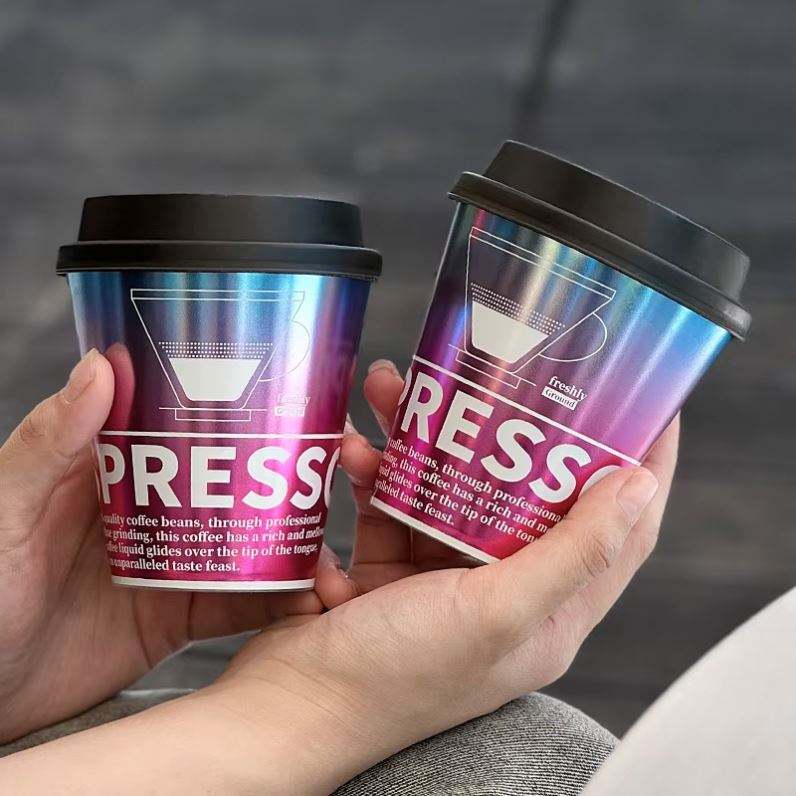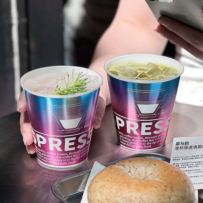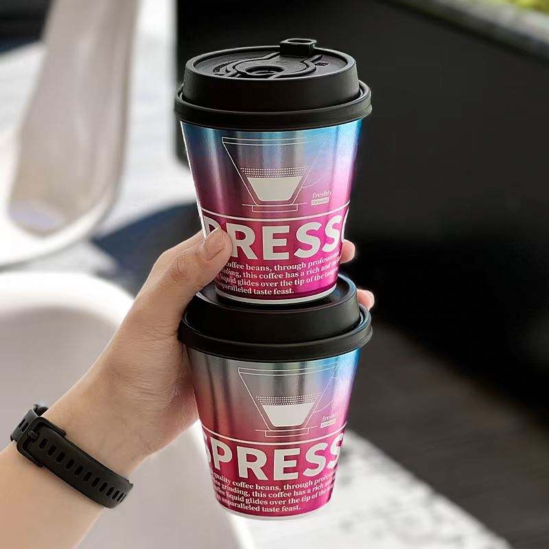 แก้วกาแฟแบบใช้แล้วทิ้ง PP ขนาด 300 มล. ทนความร้อนสูง ผนังเดี่ยว เป็นมิตรกับสิ่งแวดล้อม ฝาฉีดขึ้นรูป พร้อมสติกเกอร์ด้านในขนาด 90 มม.
