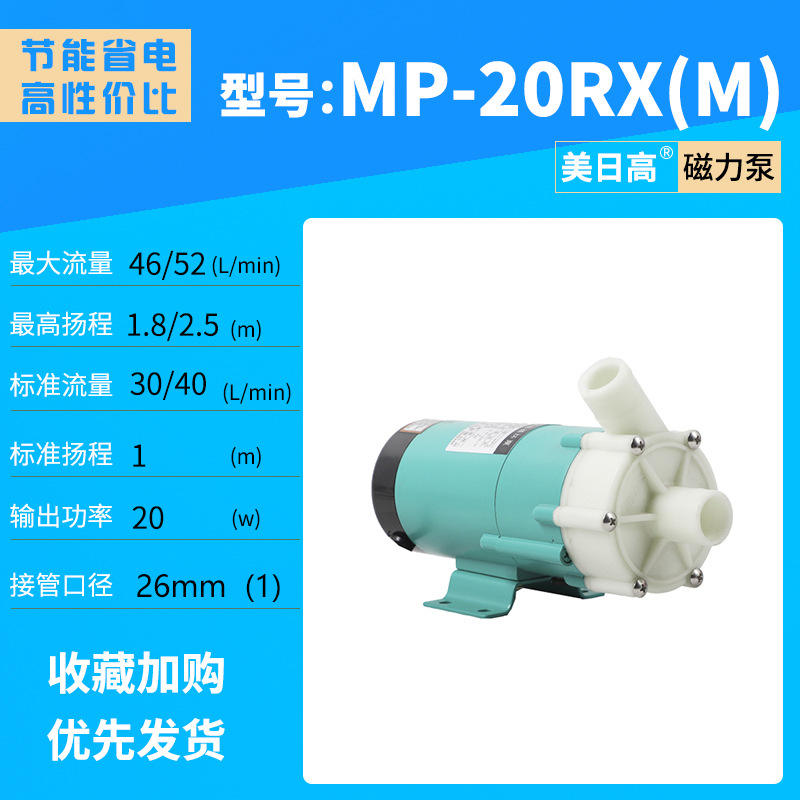 ปั๊มหมุนเวียนสารเคมีแบบแม่เหล็ก ทนความร้อนสูง MP-20RX(M) MP-20RZ(M) สำหรับสารกรดและด่าง อุปกรณ์ขนส่งสารเคมี