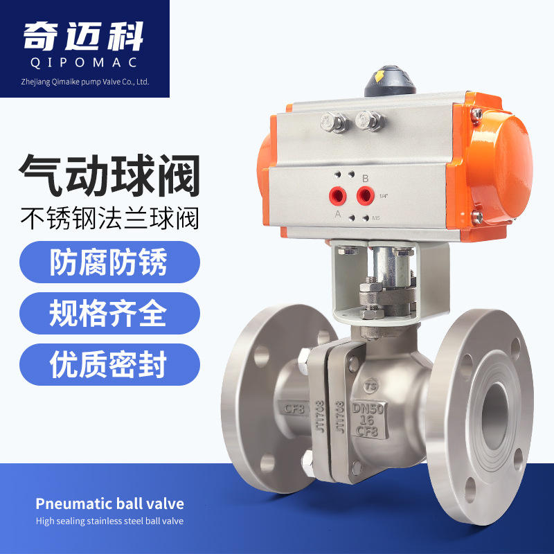 วาล์วบอลนิวเมติกสแตนเลส 304 ทนความร้อนสูง รุ่น Q641F-16P/C แบบหน้าแปลนเหล็กหล่อ สำหรับปิด-เปิดน้ำและก๊าซ