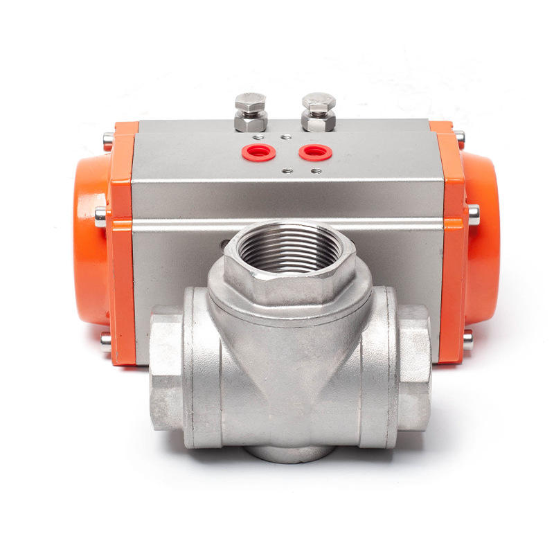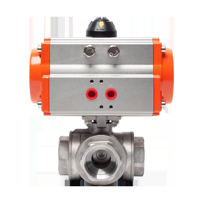 วาล์วบอลสามทางแบบนิวเมติกสแตนเลสเกลียวทนความร้อนสูง รุ่น Q614/5-16P แบบ T/L สำหรับงานสลับการทำงาน