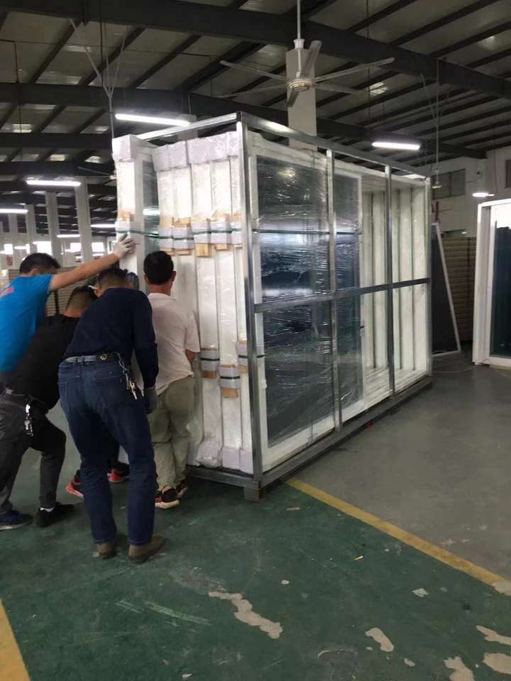 2.Tie up windowsor doors in wood/steel pallets with plastic belts .