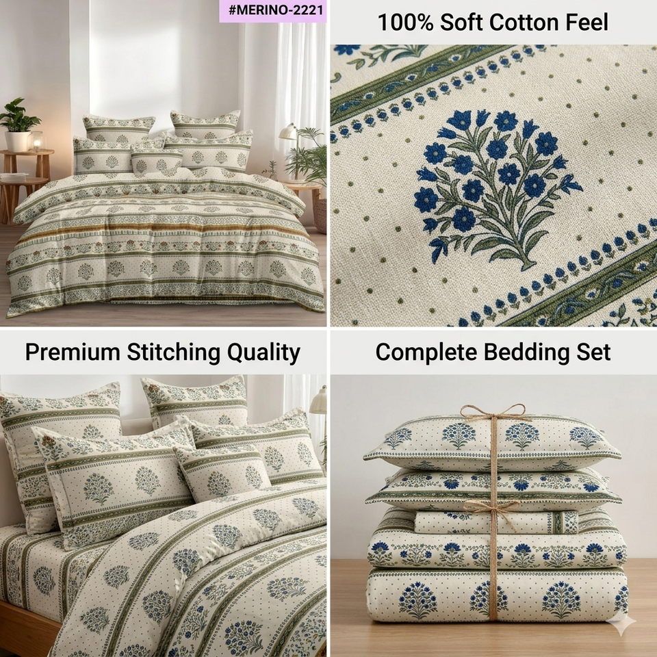 ผ้าปูที่นอนแบบเรียบ 1 ผืน + ผ้าปูที่นอนแบบรัดมุม 1 ผืน + ปลอกหมอน 2 ใบ