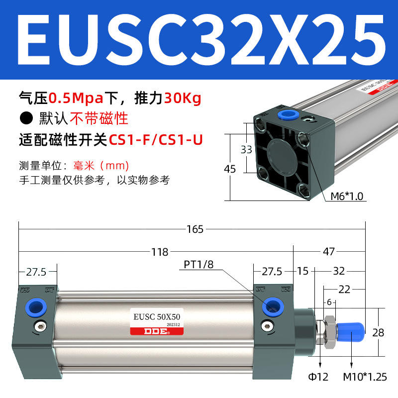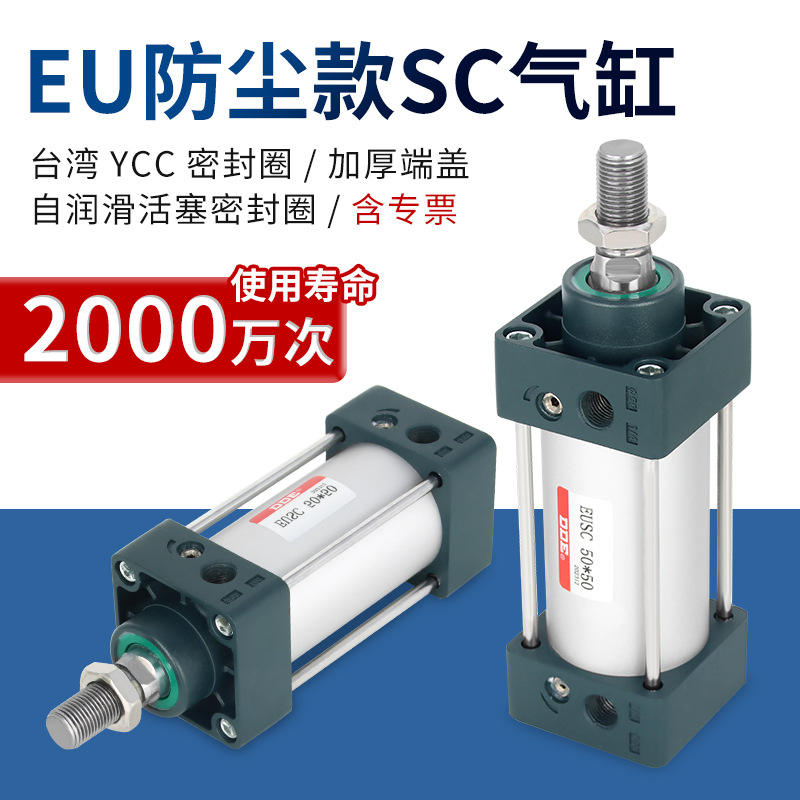 กระบอกลมแรงดันสูงมาตรฐานยุโรป ป้องกันฝุ่น รุ่น SC ระบบลมขนาดเล็กสำหรับเครื่องจักร ผลิตจากอลูมิเนียมอัลลอยด์ สำหรับเก็บลมทำงาน รุ่น SC40/50/63/80