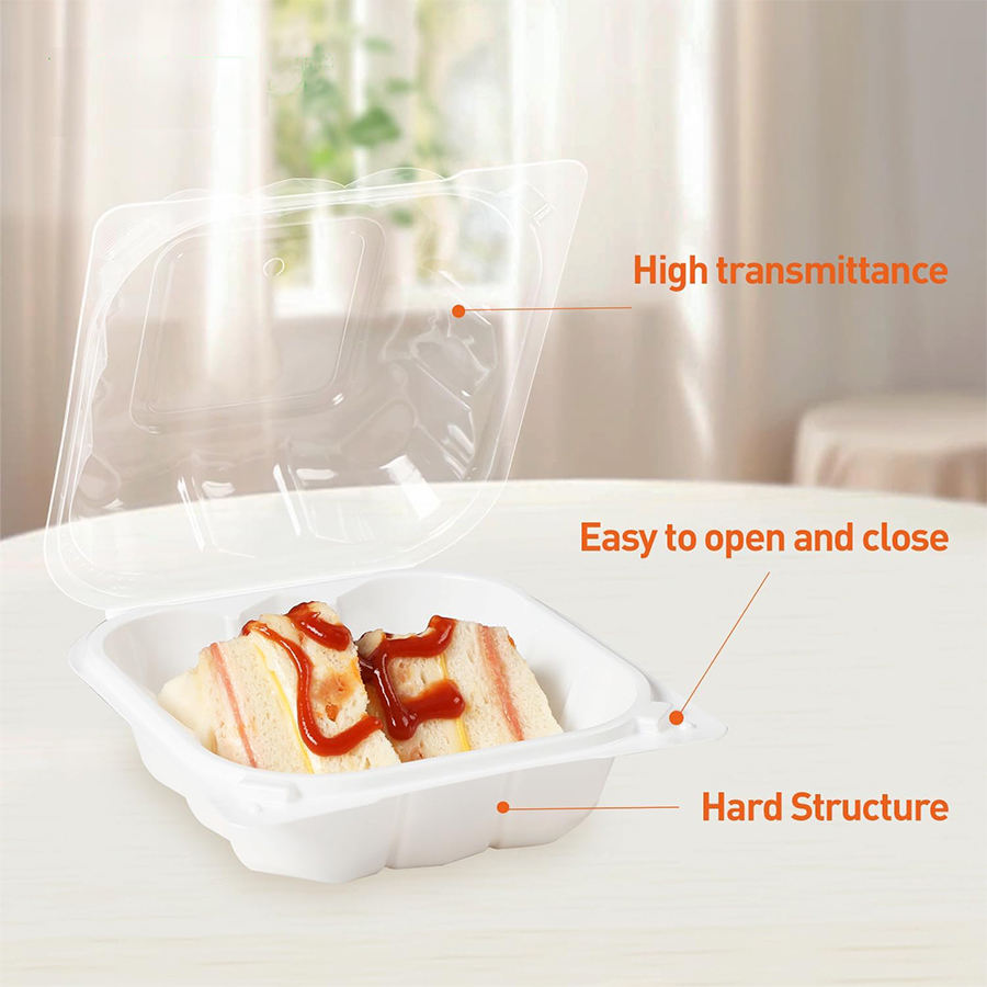 กล่องอาหารแบบฝาพับ ขนาด 6 นิ้ว ป้องกันฝ้า ผลิตจากพลาสติก ใช้แล้วทิ้ง คุณภาพสูง แสงทะลุผ่านได้ดี