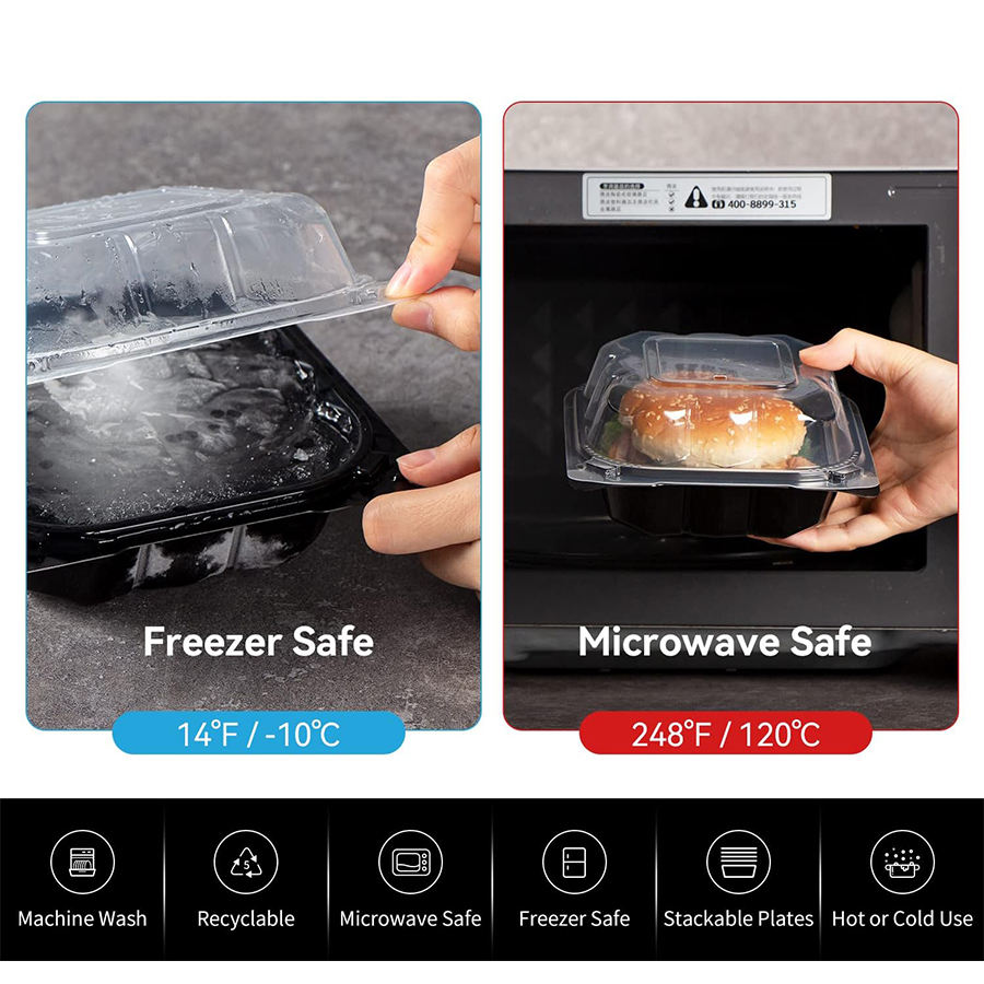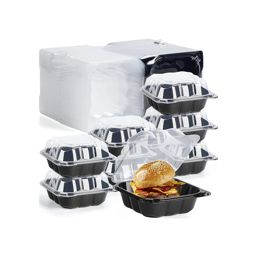 กล่องอาหารพลาสติกใช้แล้วทิ้ง ขนาด 6 นิ้ว พร้อมบานพับ กันฝ้า