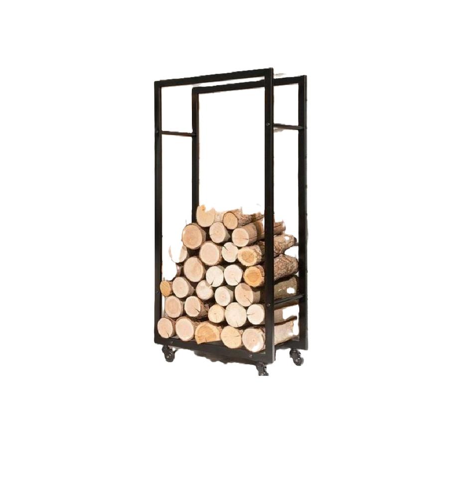 ชั้นวางของไม้ไฟชั้นวางของไม้ฟืนพร้อมล้อที่ใส่ของตกแต่ง
