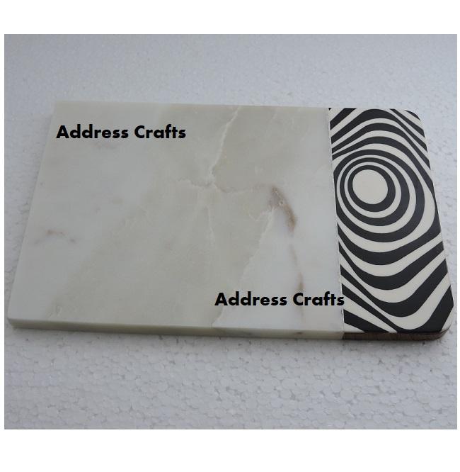 เขียงทรงสี่เหลี่ยมผืนผ้าหินอ่อนและเรซินแผ่นรองชีสใช้สำหรับอาหารเช้าดีไซน์ล่าสุด