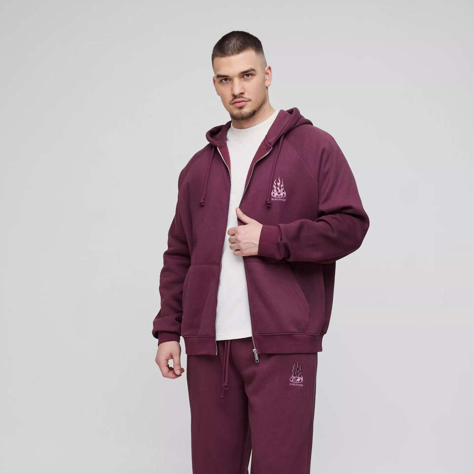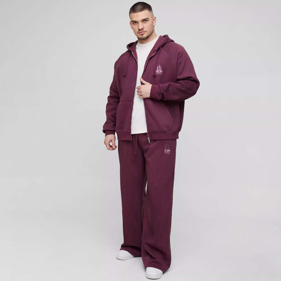 ชุดวอร์มฮู้ดดี้ทรงโอเวอร์ไซส์ แขนเสื้อแบบแร็กแลน ซิปยาว ปักลาย สไตล์สตรีทแวร์สุดเท่ห์ สำหรับผู้ชาย พรีเมียม พร้อมกางเกงจ็อกเกอร์
