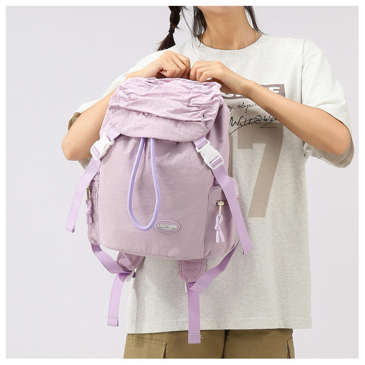 กระเป๋าเป้สะพายหลังแบบมีเชือกผูกสำหรับผู้หญิง ดีไซน์น่ารัก จีบระบาย เหมาะสำหรับนักเรียนมัธยมต้น ใช้งานได้หลากหลาย ดีไซน์ใหม่