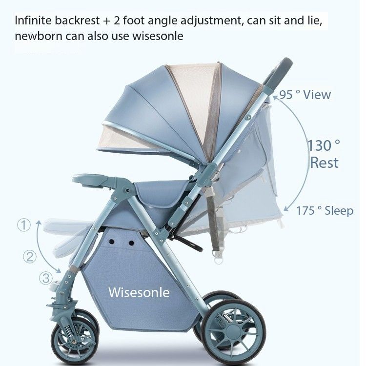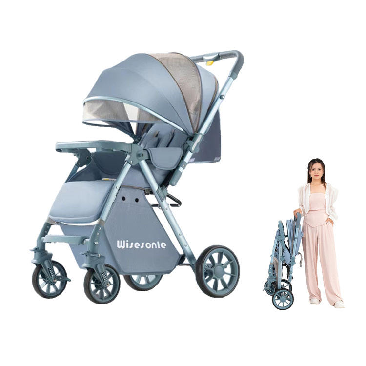 รถเข็นเด็กสองทางพับได้ด้วยปุ่มเดียวสามารถนั่งและนอนด้านหน้าและด้านหลังได้