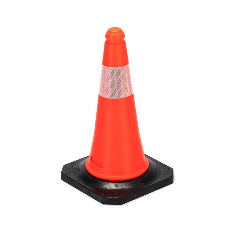 กรวยจราจรพลาสติก PE ขนาด500มม. พร้อมฐานยางและผลิตภัณฑ์เตือนถนนที่มีประสิทธิภาพสูง