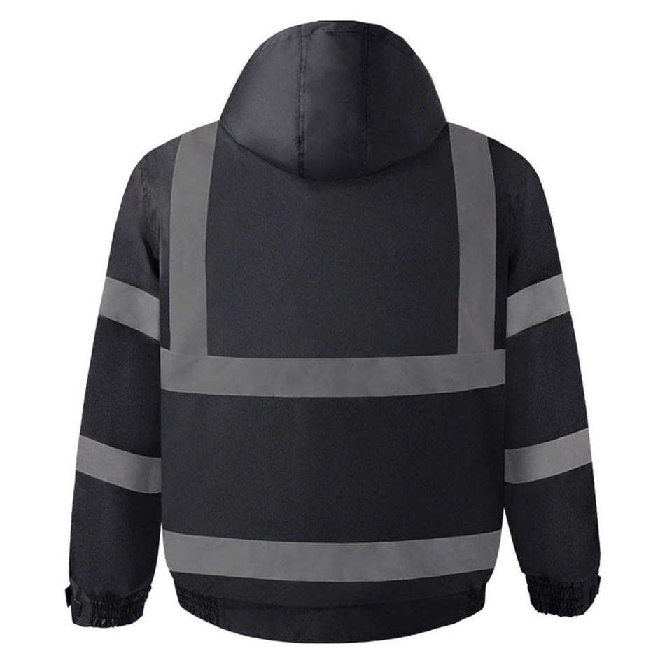 เสื้อแจ็คเก็ตนิรภัยสะท้อนแสง ANSI Class 2 สำหรับผู้ชาย กันลม กันน้ำ ซับในผ้าฟลีซ พร้อมไฟ LED โลโก้แบบแฟลช แห้งเร็ว
