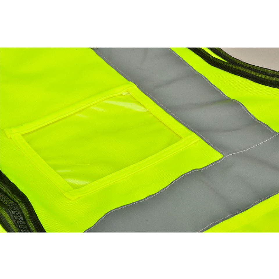 เสื้อกั๊กนิรภัยผ้าโพลีเอสเตอร์กันน้ำระดับ2มองเห็นได้ชัดเจนเสื้อกั๊กทำงานสะท้อนแสงสำหรับใช้ในอุตสาหกรรมก่อสร้างน้ำหนักเบา