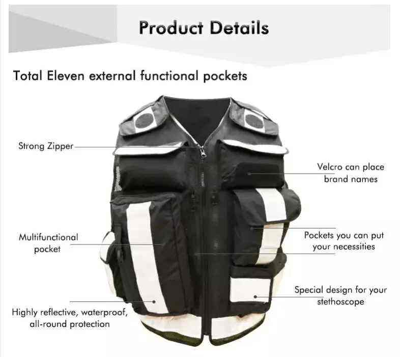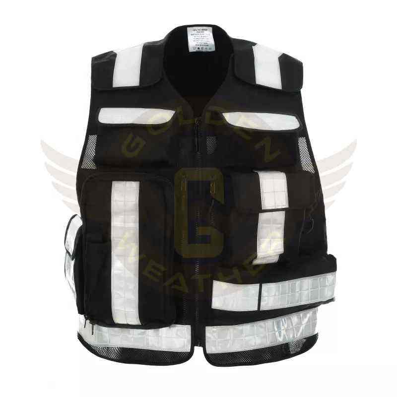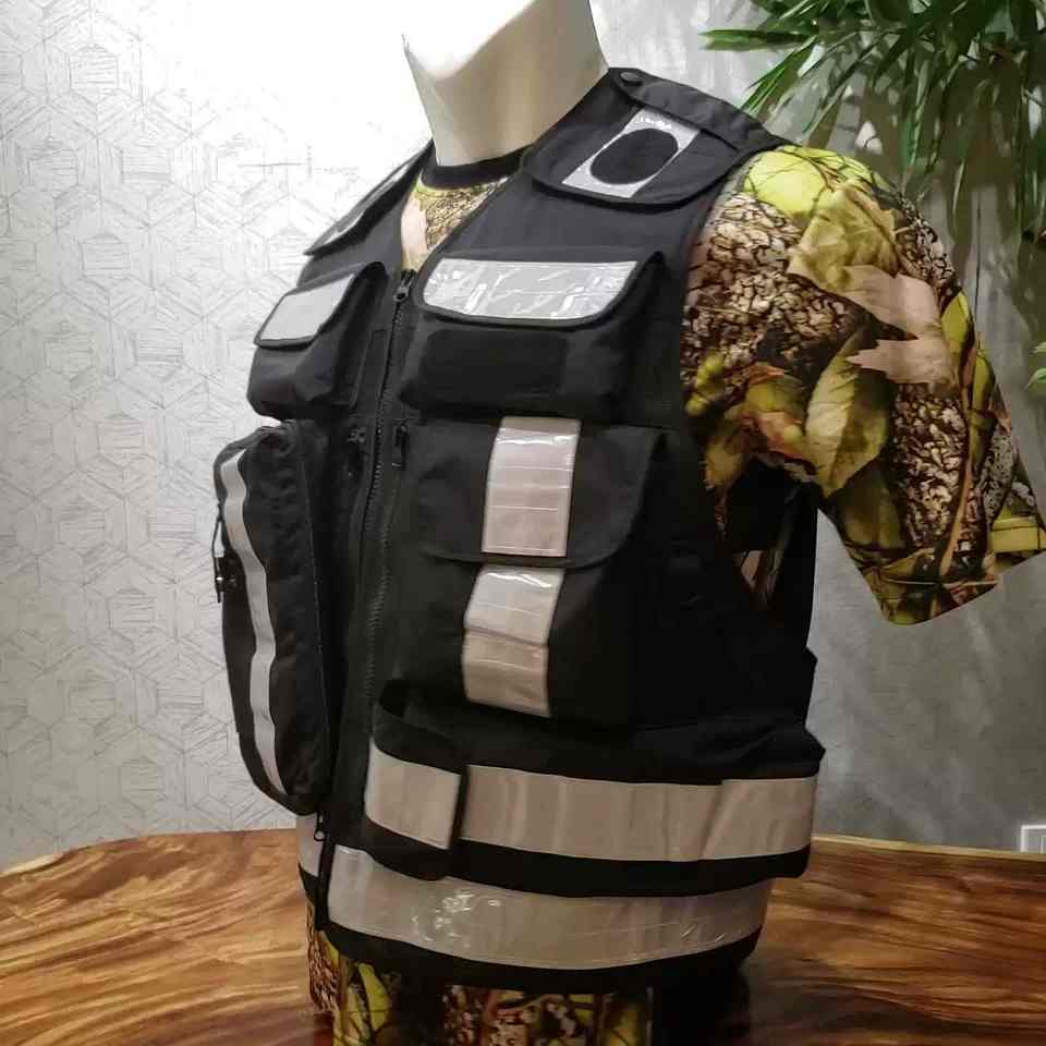 เสื้อกั๊กสะท้อนแสงสีดำแบบมองเห็นได้ชัดเจนสำหรับพยาบาลฉุกเฉิน ช่วยเหลือผู้ป่วย ช่วยชีวิต ฝึกสุนัข และงานทางยุทธวิธี