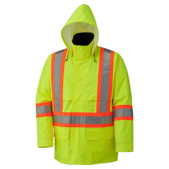 เสื้อแจ็กเก็ตกันฝนแบบมาตรฐานของ Ansi OSHA กันน้ำมองเห็นได้ชัดเจนพร้อมโลโก้ที่ปรับแต่งได้