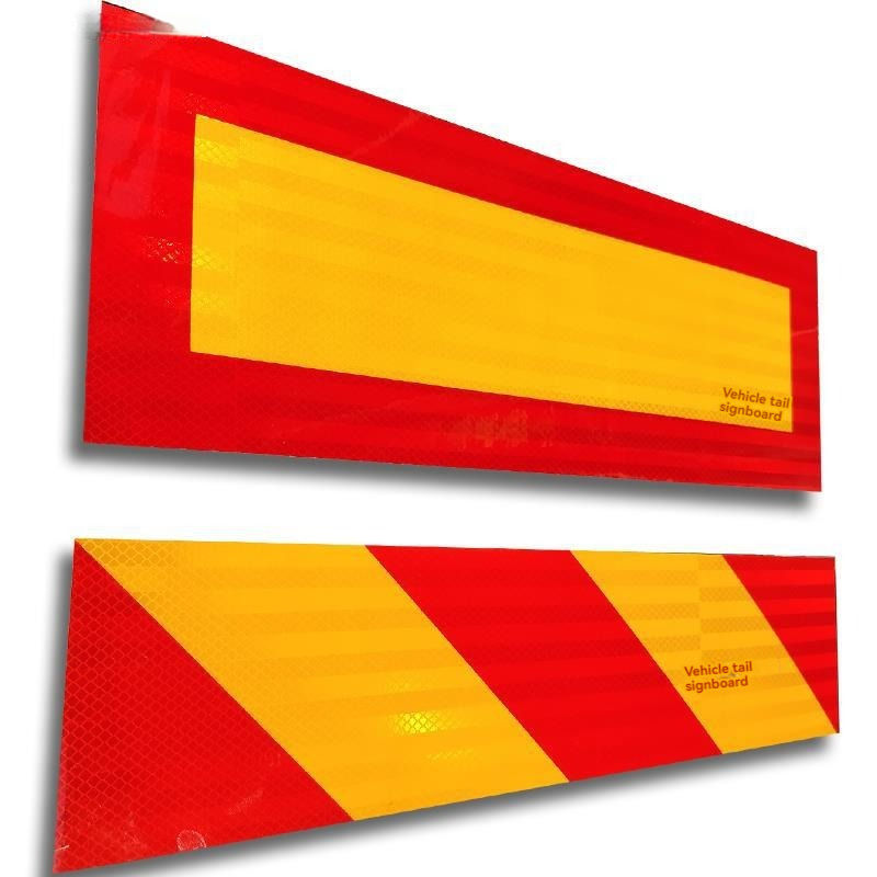 แผ่นป้ายท้ายรถบรรทุกหนัก190มม. x 550มม. สีเหลืองสีแดงสะท้อนแสงคำเตือนเพื่อความปลอดภัยในพื้นที่การจราจรสูง PE