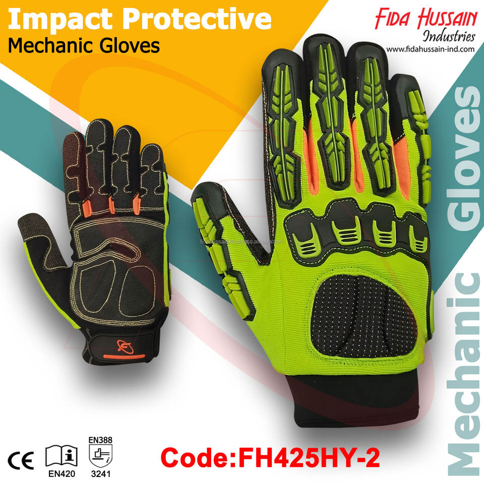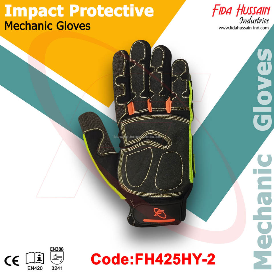 ถุงมือหนังสังเคราะห์ทนน้ำมันและน้ำทนน้ำมันถุงมือช่างป้องกันการกระแทกมองเห็นได้ชัดเจน