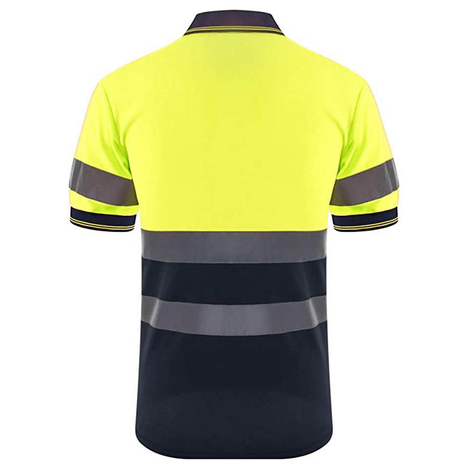 เสื้อโปโลผ้าฝ้ายแขนสั้นสะท้อนแสงสำหรับงานก่อสร้าง ชุดทำงานนิรภัยสำหรับผู้ชายที่มองเห็นได้ชัดเจน