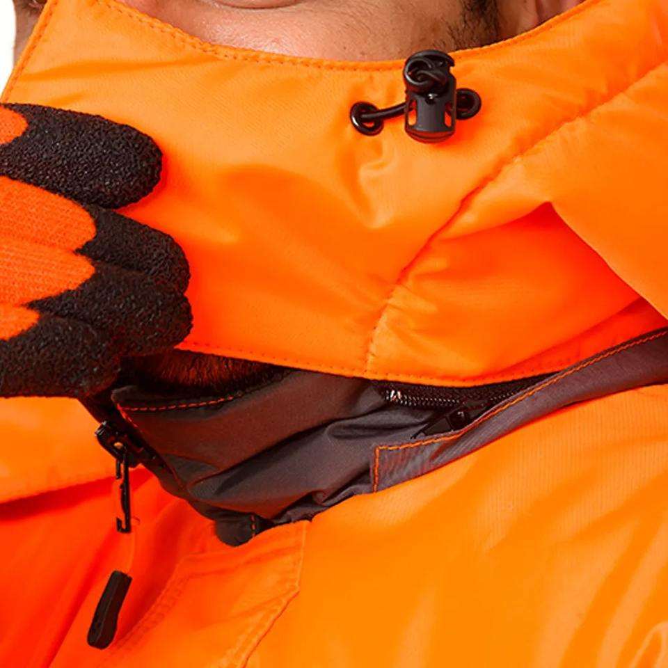 เสื้อฮู้ดสะท้อนแสงสีเขียวนีออนและสีดำแบบมองเห็นได้ชัดเจนสำหรับงานอุตสาหกรรม งานก่อสร้าง และงานป้องกันภัย