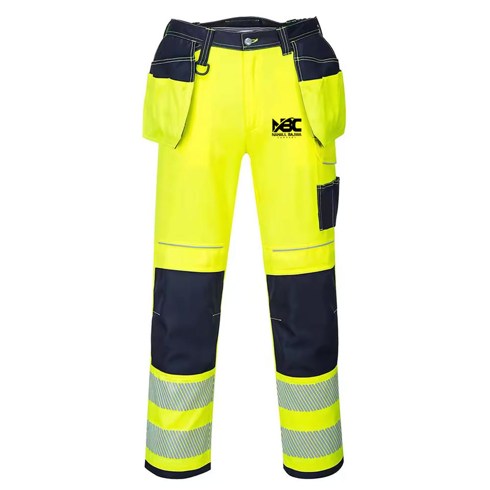 กางเกงเซฟตี้ในการทำงานปรับแต่งได้สำหรับฤดูหนาวกางเกงโพลีเอสเตอร์มองเห็นได้ชัดเจนมีกระเป๋าสะท้อนแสงสองสีรองรับโลโก้ออกแบบได้ตามต้องการ
