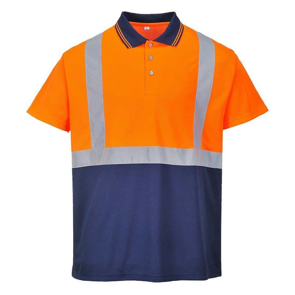เสื้อโปโลแขนสั้นสะท้อนแสงแบบมองเห็นได้ชัดเจนสำหรับงานก่อสร้าง รับสกรีนโลโก้ เสื้อทำงานถัก ขายส่ง