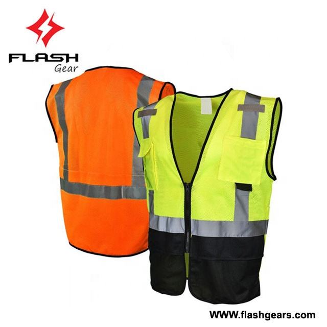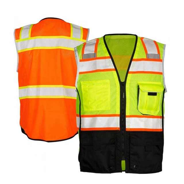 เสื้อกั๊กสะท้อนแสงมองเห็นสูง,เสื้อกั๊กความปลอดภัยสำหรับงานก่อสร้างถนนเสื้อกั๊กเพื่อความปลอดภัยพร้อมกระเป๋า