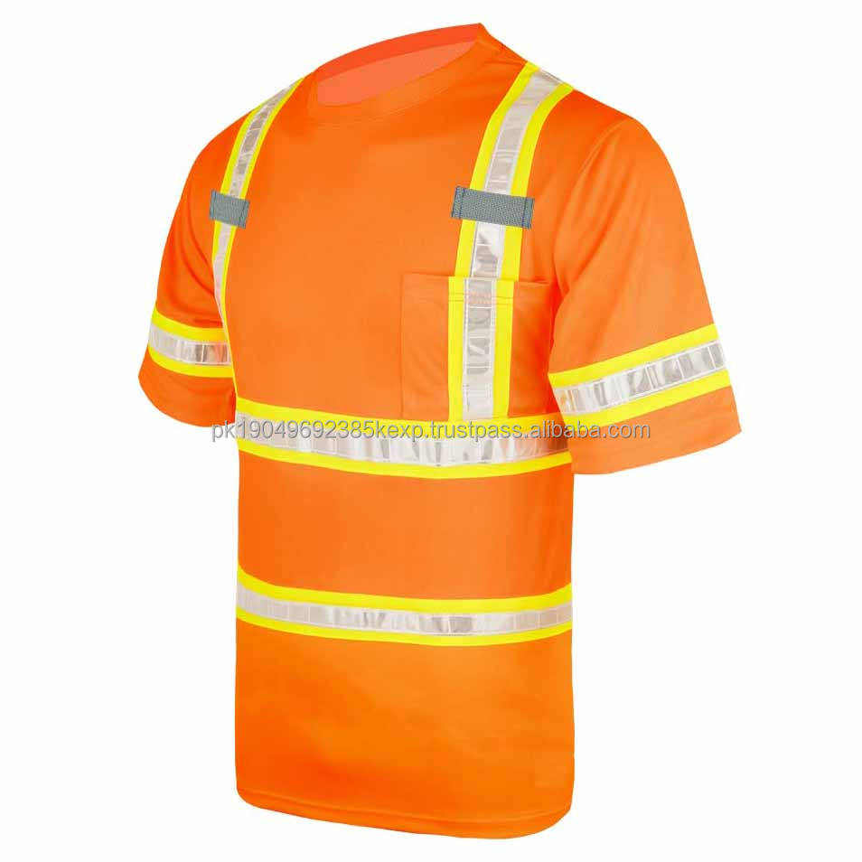 เสื้อยืดสะท้อนแสงความปลอดภัยสูง ผ้าระบายอากาศดี ทนทาน ไซส์ใหญ่ ผ้าฝ้าย 100% เสื้อทำงานผู้ชาย