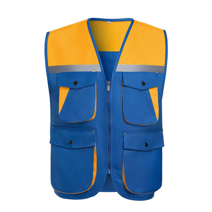 เสื้อกั๊กตาข่ายโพลีเอสเตอร์สะท้อนแสงมองเห็นได้ชัดเจนสำหรับงานบนถนนการจราจรควบคุมกลางแจ้ง