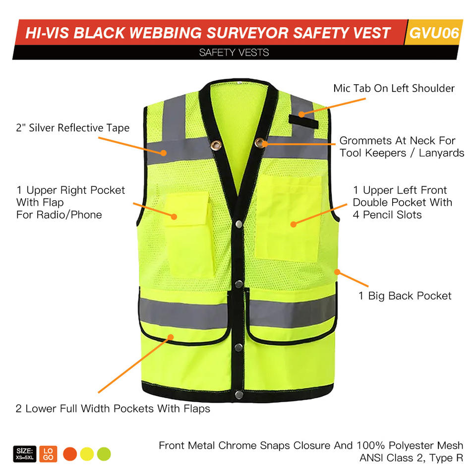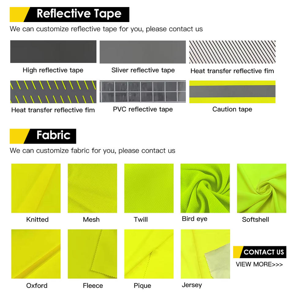 เสื้อกั๊กสะท้อนแสงแบบมองเห็นได้ชัดเจนพร้อมซิปและกระเป๋า เสื้อกั๊กตาข่ายสีเหลืองสำหรับงานก่อสร้างและการจราจร