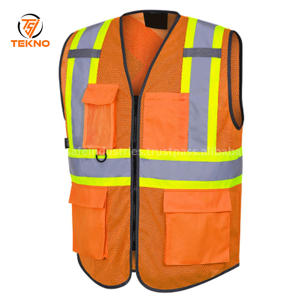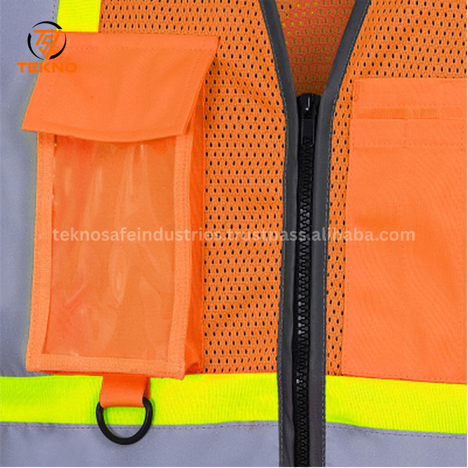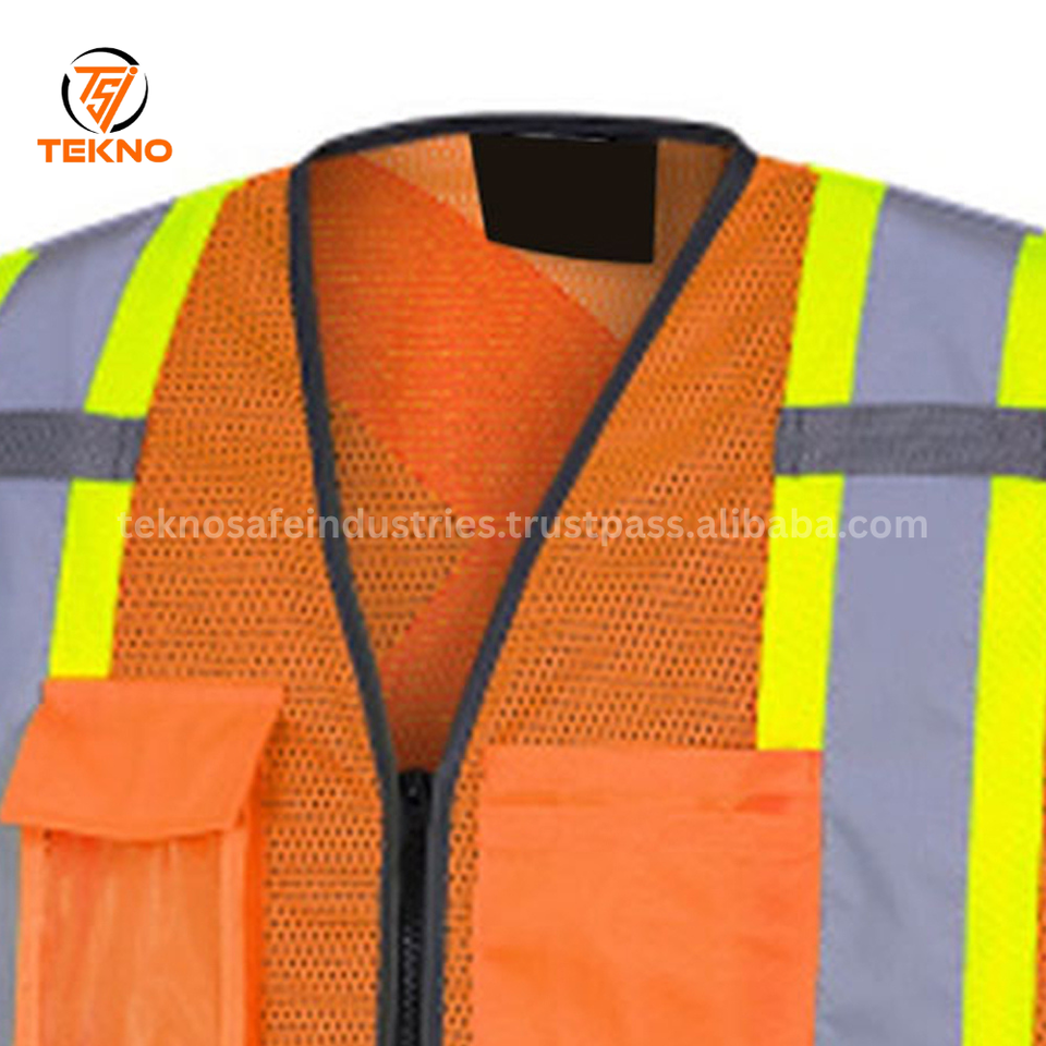 เสื้อกั๊กนิรภัยสะท้อนแสงมองเห็นได้ชัดเจนเสื้อกั๊กนิรภัยมีกระเป๋าและซิปด้านหน้าเสื้อกั๊กนิรภัยสะท้อนแสง