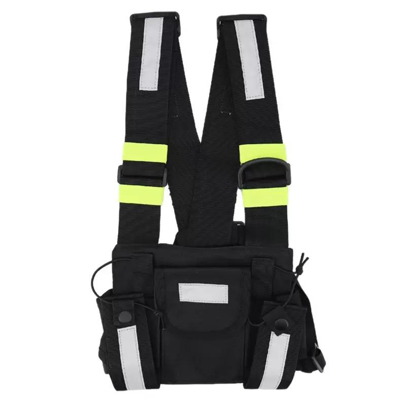 เสื้อกั๊กยุทธวิธีสะท้อนแสงมองเห็นได้ชัดเจนพร้อมสายคล้องหน้าอกวิทยุแบบปรับได้สำหรับทำงานกลางแจ้ง