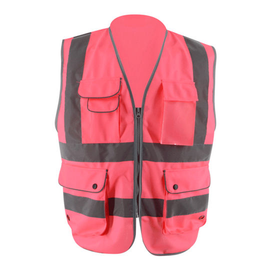เสื้อกั๊กสะท้อนแสงสำหรับใส่ทำงานเสื้อแจ็กเก็ตความปลอดภัยมองเห็นได้ชัดเจนพร้อมโลโก้ตามสั่ง