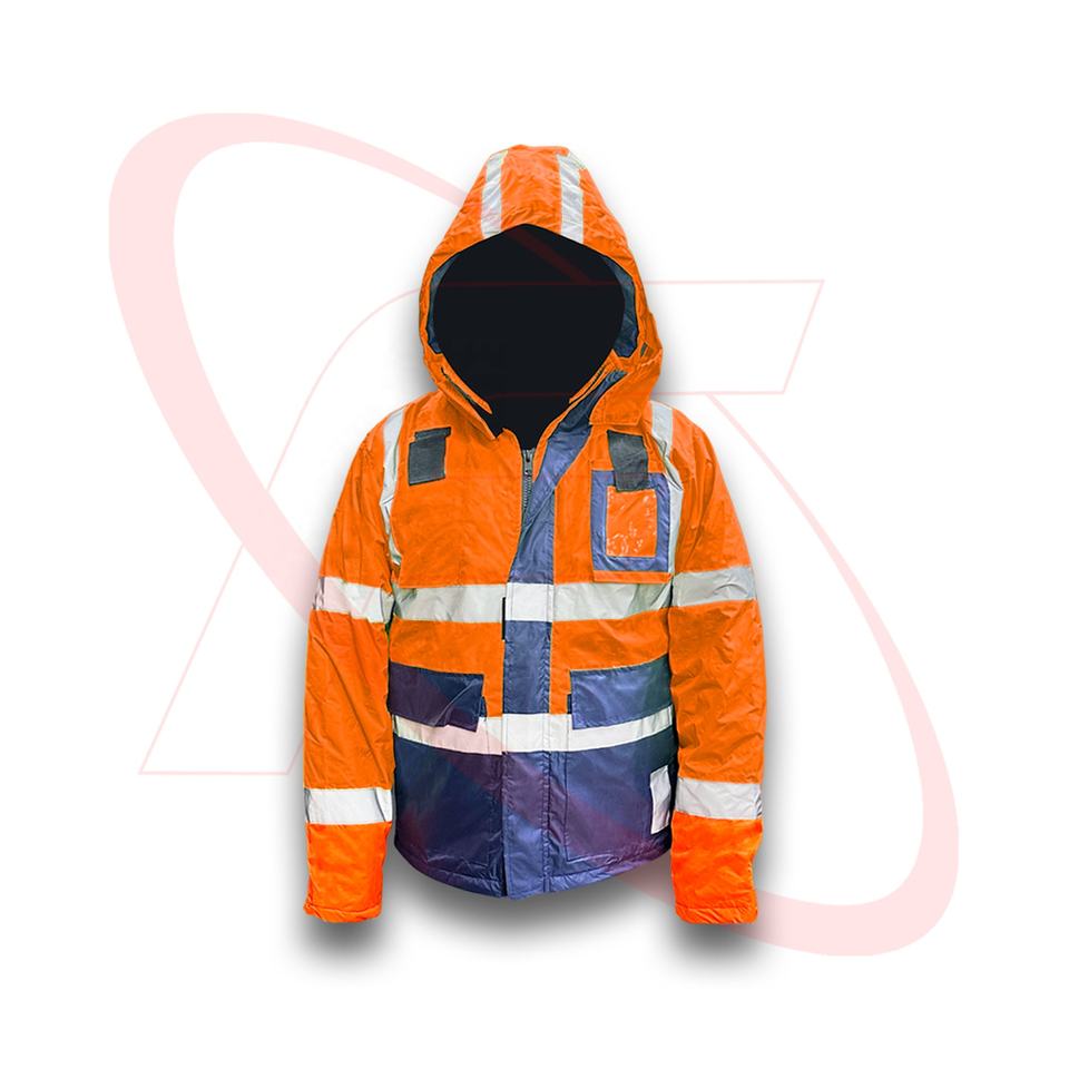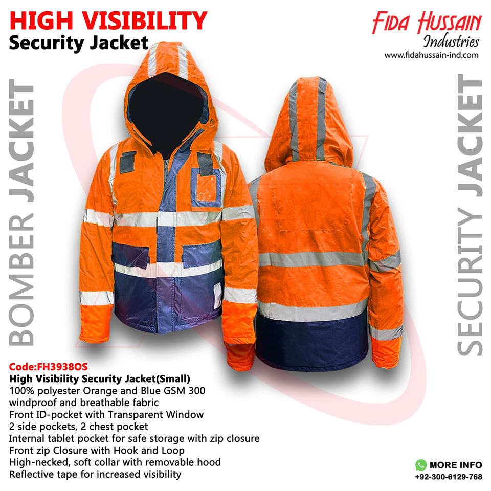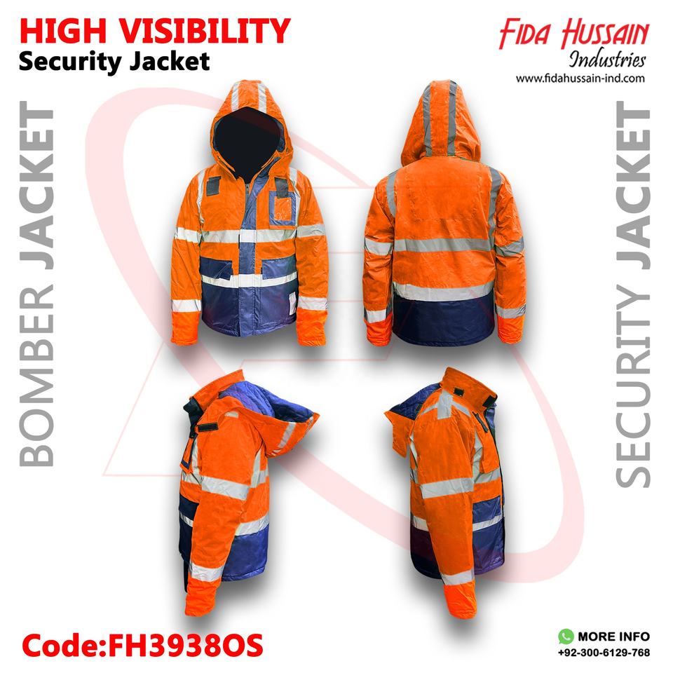 เสื้อแจ็คเก็ตบอมเบอร์โพลีเอสเตอร์ 100% ระบายอากาศได้ดี กันลม มองเห็นได้ชัดเจน เหมาะสำหรับงานป้องกันความปลอดภัย