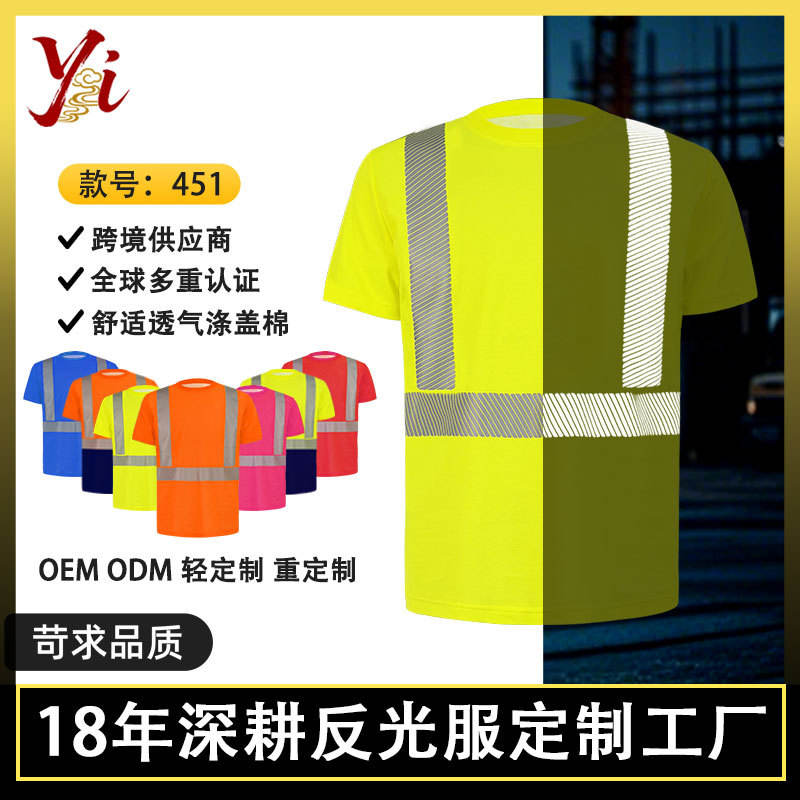 เสื้อยืดนิรภัยสะท้อนแสงสีส้มเรืองแสง แถบสะท้อนแสง ชุดทำงาน ชุดก่อสร้างถนน รุ่น 451