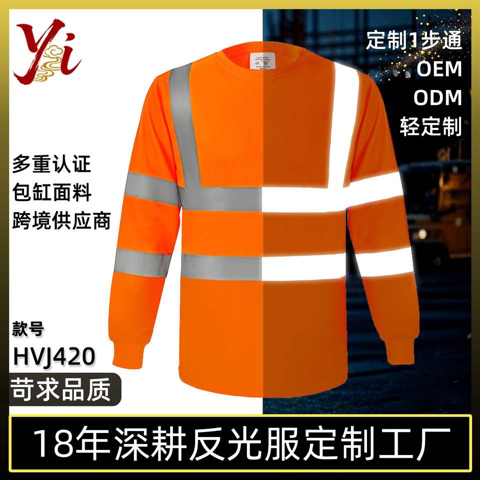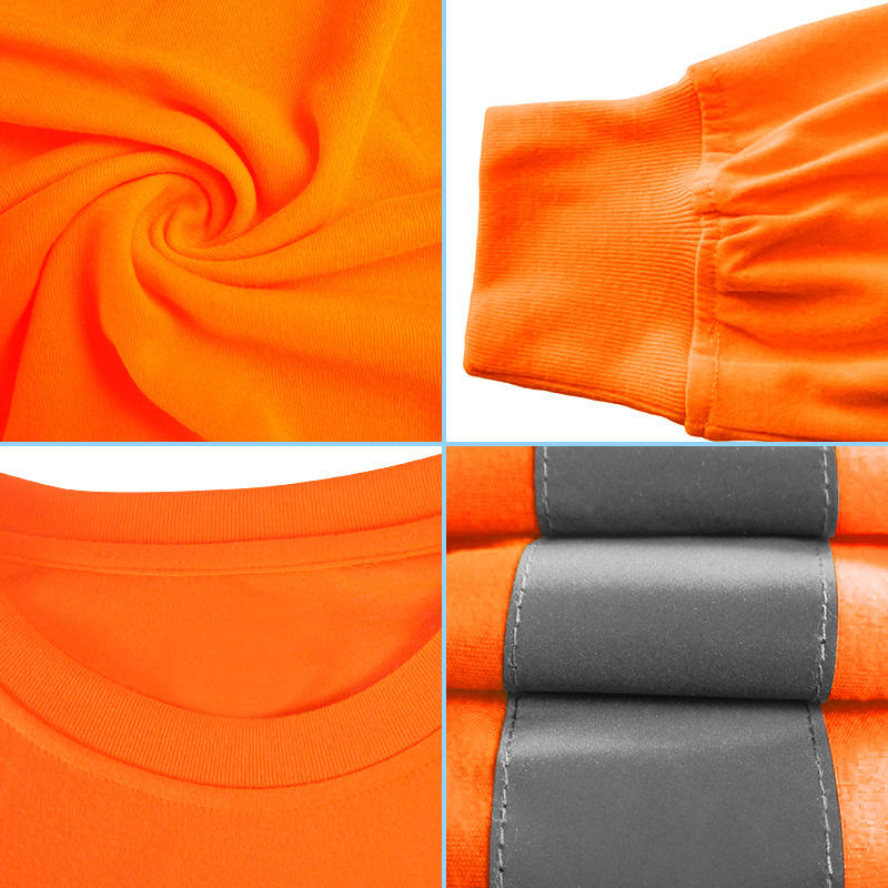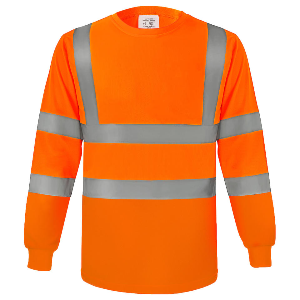 เสื้อยืดนิรภัยแบบมองเห็นได้ชัดเจน แขนยาว แถบสะท้อนแสง ดูดซับความชื้น สีส้ม SMLXL2XL