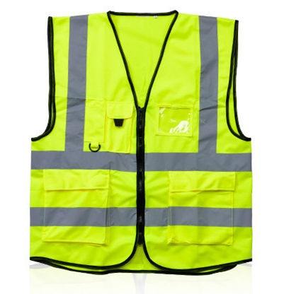 เสื้อกั๊กสะท้อนแสงสำหรับงานก่อสร้างเสื้อกั๊กมีโลโก้ที่กำหนดเองกันลมกันน้ำมีคุณลักษณะเสื้อผ้าสะท้อนแสงเพื่อความปลอดภัย